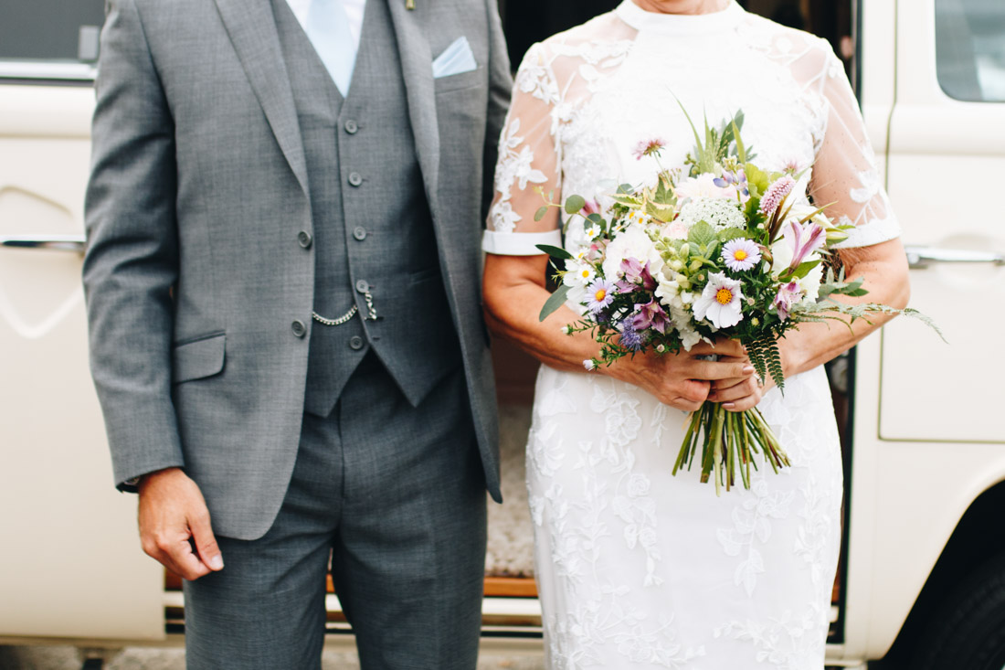 Rachel arrived in classic country fashion, in a Land Rover! Somehow she manoeuvred up to the church in her heels and still looked amazing despite the strong winds. Her brother gave her away, and her nieces and granddaughter were her bridesmaids. Her gorgeous flowers were by Hannah of In Bloom.