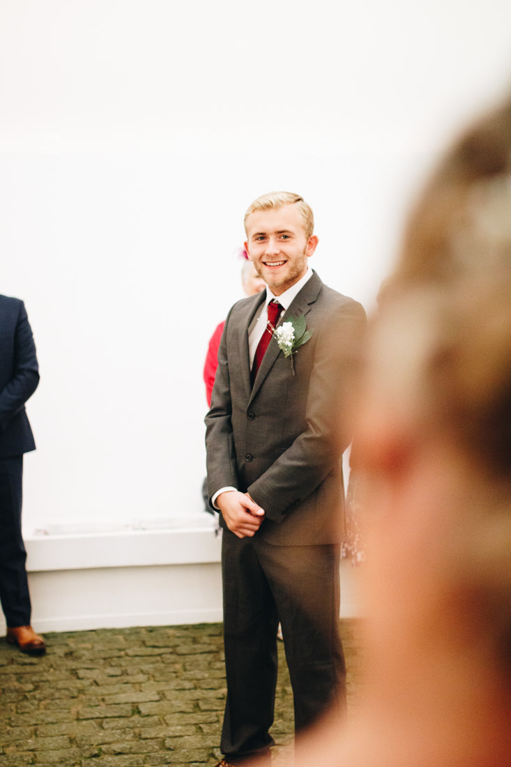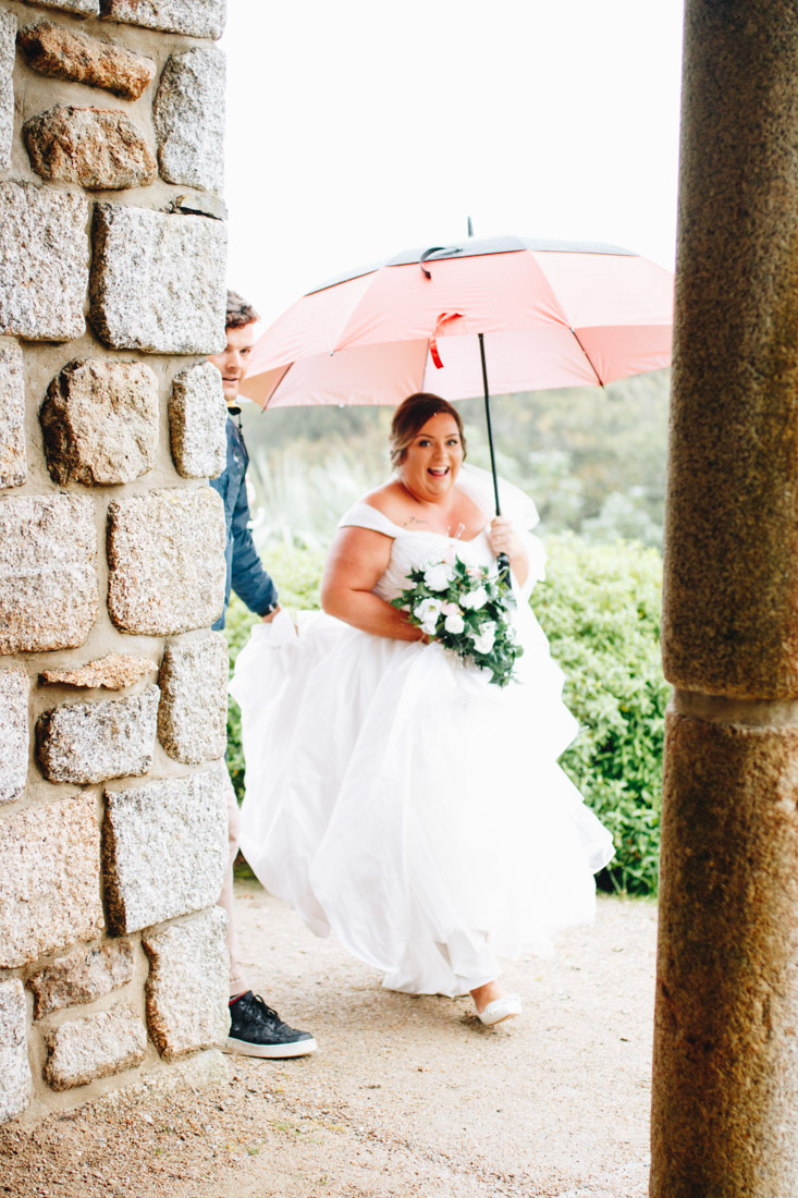 The weather, however, was not as gorgeous. It was absolutely chucking it down! This didn’t dampen Jeni and Joe’s moods though. The ceremony took place at Tremenheere Sculpture Gardens.