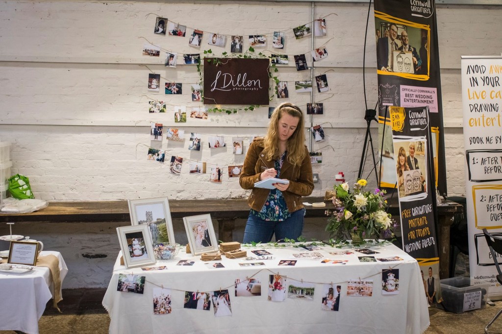 I won’t lie, was rather nervous – there was a fabulous range of suppliers and vendors, and I didn’t think I’d be up to scratch with them at all. I’ve only been doing this for a few years, and as much as I love it, I didn’t feel I’d be on their level. On the day, however, everyone was SO welcoming. I came in and my table was next to Martha & Maud – a gorgeous vintage china hire company – and Cornwall Caricatures! I was very happy being with these two lovely ladies.
