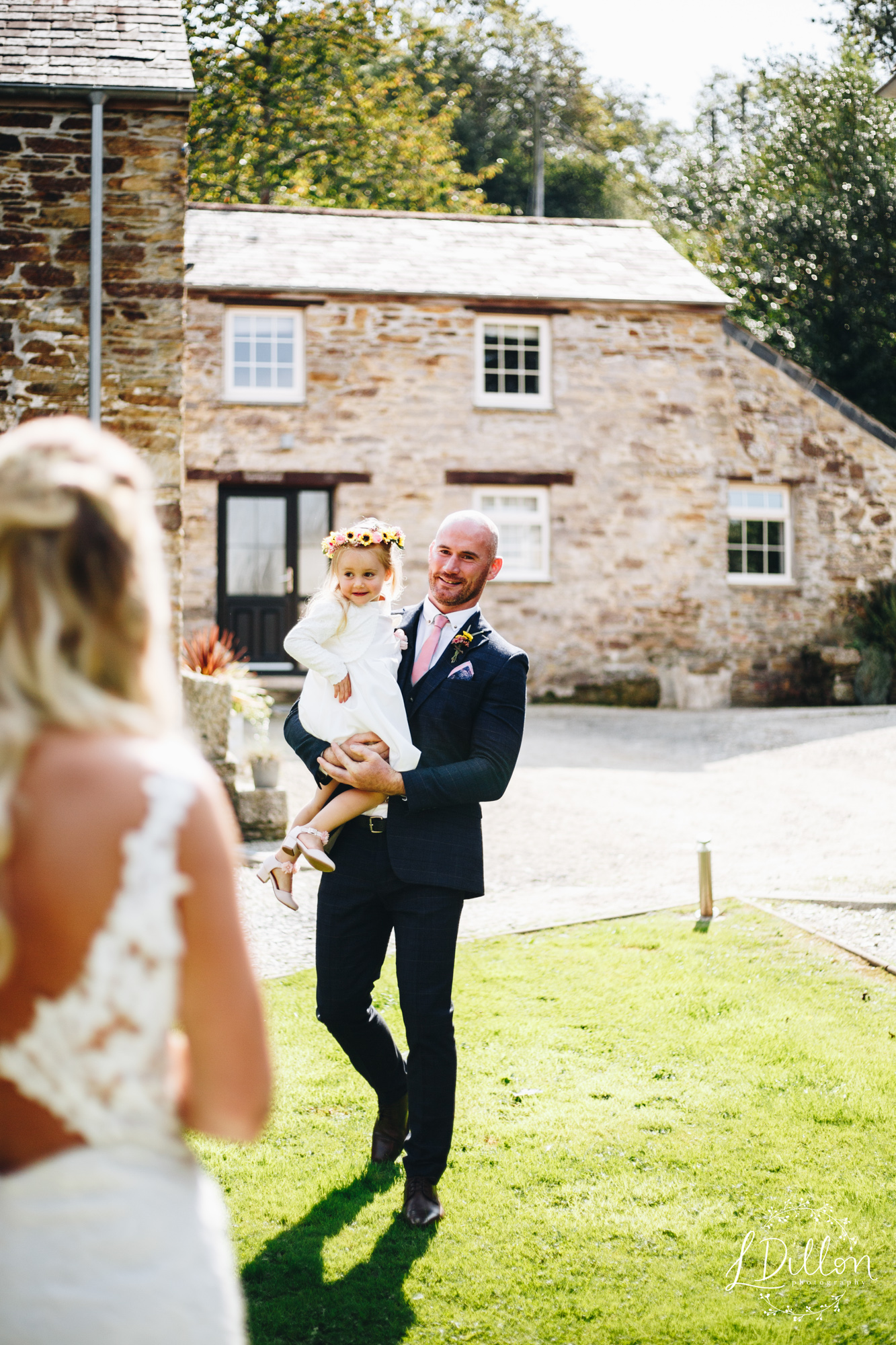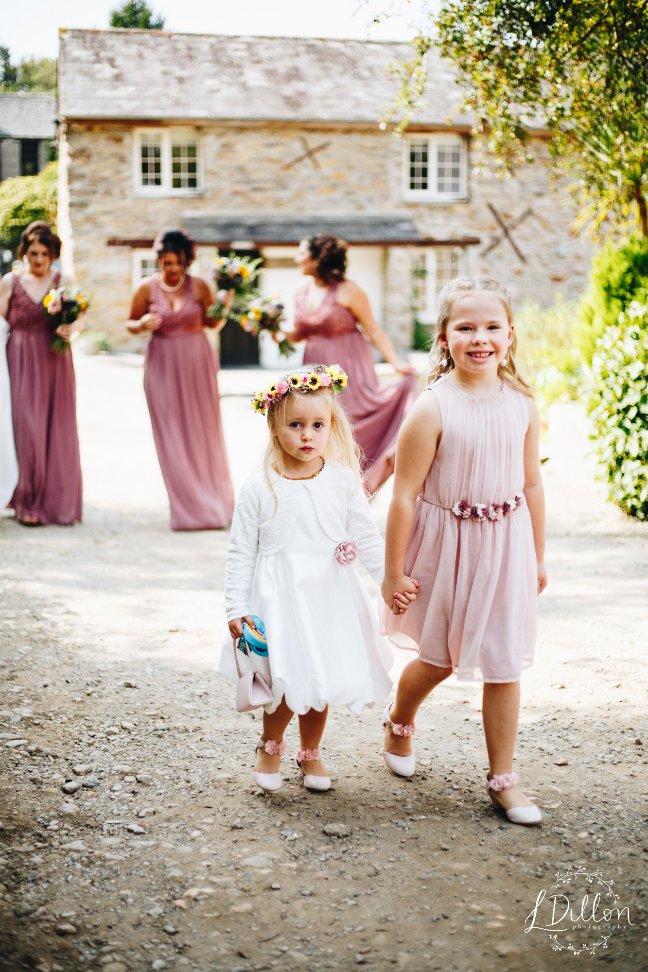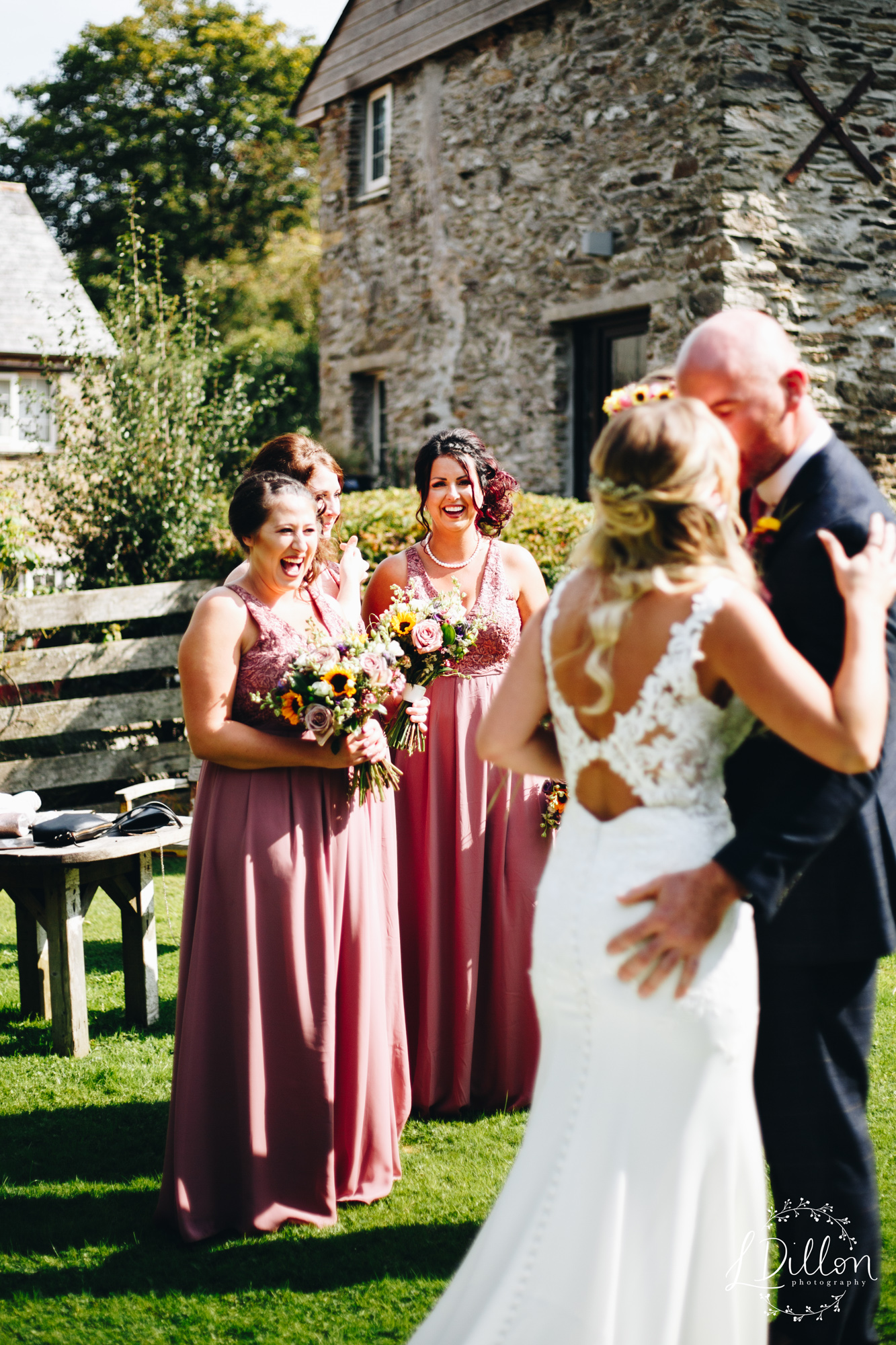 Due to the legality of having to sign the register in advance in a building, Holly & Mike saw each other before meeting at the end of the aisle. I therefore suggested why not make it into a first-look?! A bit more romantic than rocking up to sign a document! Mike came round the corner to see Holly, their two little girls, and the bridesmaids, all dressed up and looking gorg. So cute!