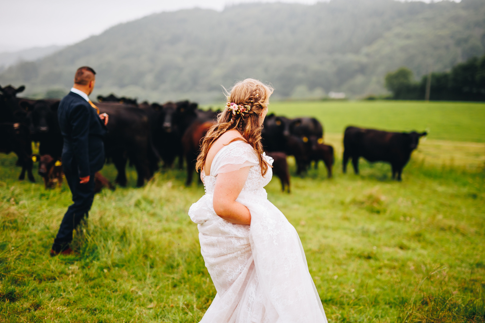 Dogs in attendance (!) and a whooole lot of cows, plus one wedding crasher cat