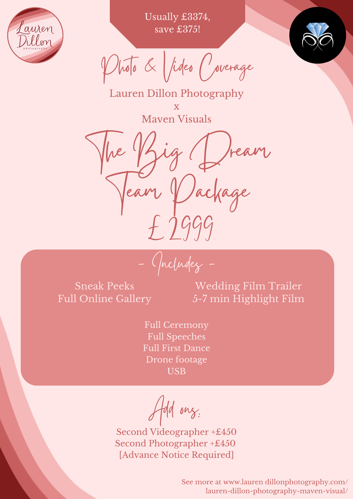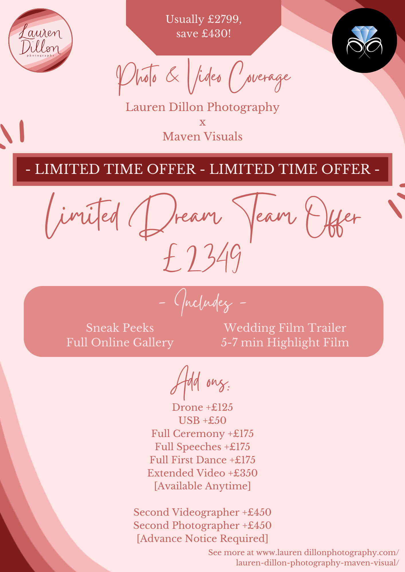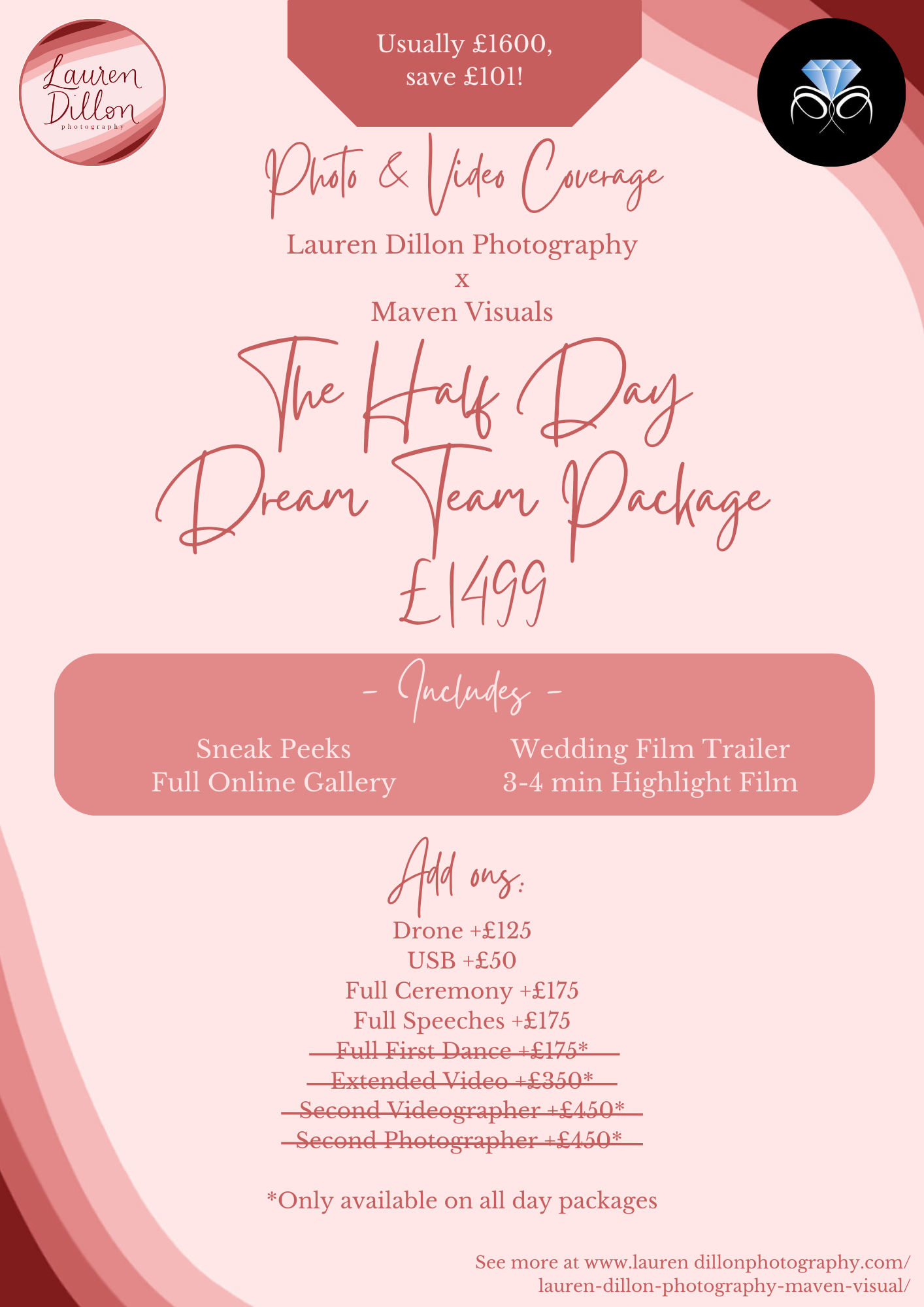 So, the masterminds Lauren of Lauren Dillon Photography and Chris of Maven Visuals have decided to combine their fabulous skills to create you a fabulous media package, documenting all that can be documented from your amazing day.